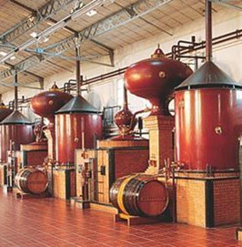 蒸馏器使用的是传统的“夏朗德”蒸馏工艺。夏朗德壶式蒸馏器的外形很有特点,有点像橄榄或者说洋葱,下面直接用火加热,上面伸出一根弯管连接到蛇形管,最后连到冷凝器。