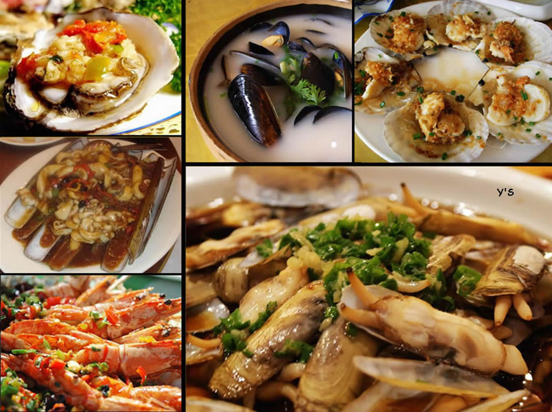 海鮮:人們大多愛吃海鮮的原汁原味,有時甚至生食海鮮。通常以"水中游、水底爬"來做海鮮的簡單分類,一般來講水中游的海鮮烹調後味道比較淡雅,宜配清淡口感的葡萄酒如清蒸魚可選擇Muscadet(密斯卡)白葡萄酒,無橡木味的Chardonnay( 霞多麗)白葡萄酒。燉鱔魚,適合配 Noir Pinot(黑皮諾)、西班牙的 Tempranillo(添帕尼羅)以及 Shiraz(西拉)等紅葡萄酒。而水底爬的螃蟹、蝦甚至貝類的蛤、鮑魚,可用口味略重或帶橡木味的白葡萄酒來搭配。如燒、烤、焗或水煮的龍蝦,都可以配帶有橡木味的 Chardonnay(霞多麗);炒貝類,可選帶有橡木味的 Chardonnay(霞多麗)、Chenin blanc(白詩楠)以及寒冷氣候區的 Sauvignon Blanc(長相思)。