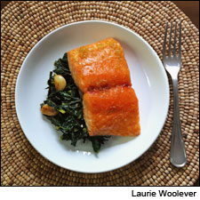 蜂蜜釉三文魚炒芥蘭和裙帶菜