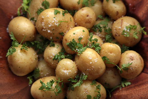 細葉芹的微妙茴香味道、黃油和豐富的Fleur de SEL加上春天的第一個小土豆。小孩子都適合吃的小吃美食。你可以在美食雜貨店和農貿市場購買小土豆。如果你不能找到它,用義大利歐芹和龍蒿的混合物代替也可以。