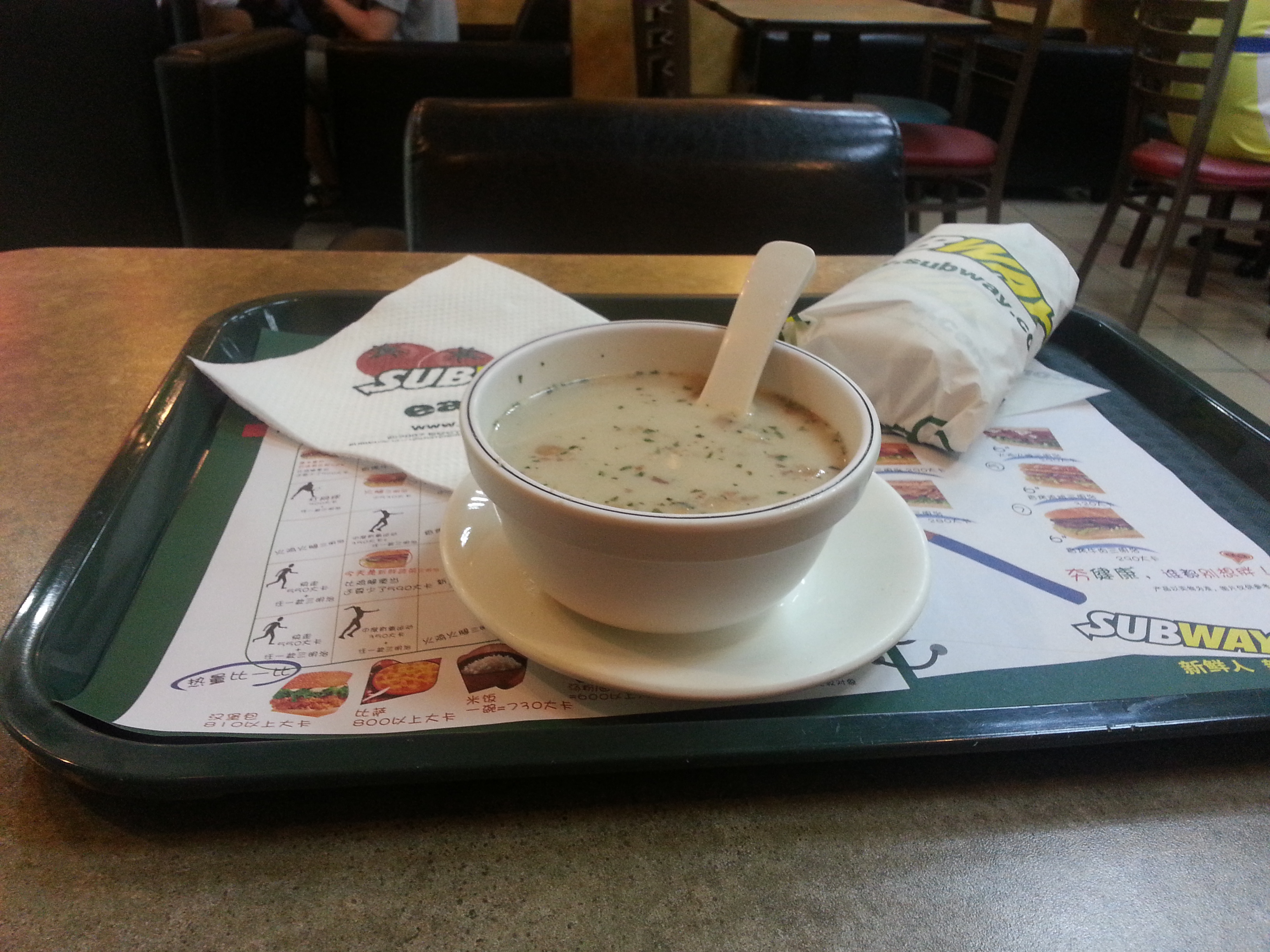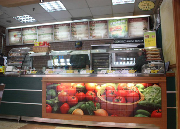 賽百味的點餐臺簡約不失時尚,餐臺正右面的一貼清晰的蔬菜海報非常醒目。餐臺右邊琳琅滿目的食材和一目了然和麵包分類,方便食客自由選擇喜歡的麵包種類和新鮮的蔬菜。如果不知怎麼搭配還可以選擇食單最上面的套餐,餐廳每天都有不同的優惠套餐,價格都在十五塊。非常經濟實惠。餐臺後面的牆上掛著詳細的速食資訊,食客可以選擇速食之外的湯點或者是付款臺旁邊的飲料和小吃。