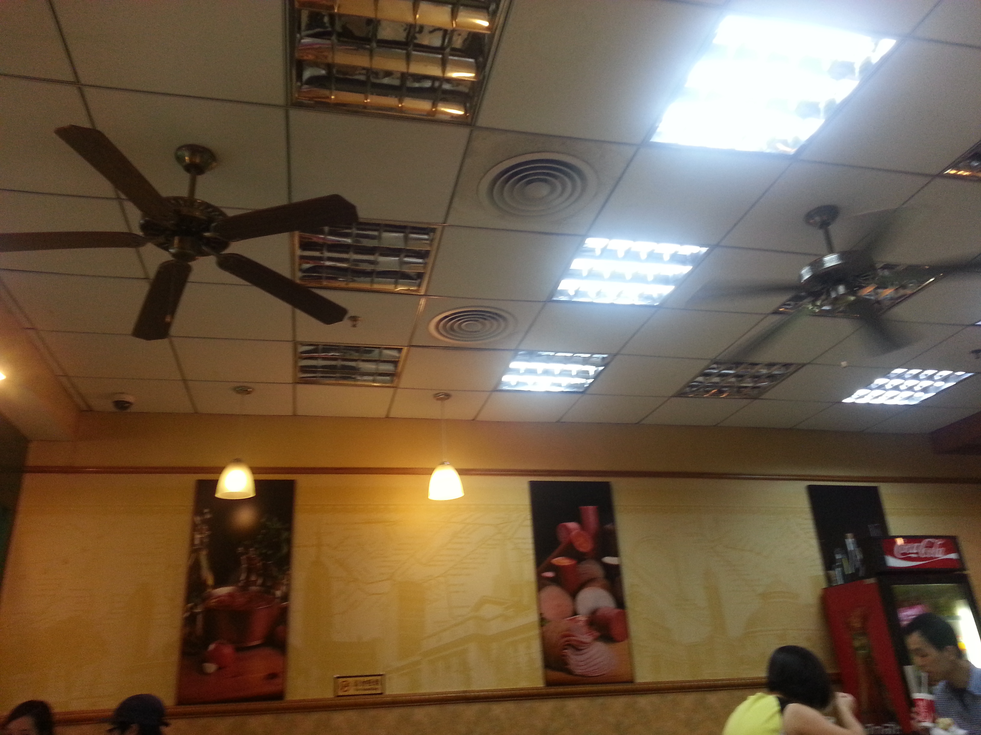 賽百味(國貿店)的裝修設計採用復古的懷舊風格,走進店裏一股60世紀的懷舊風撲面而來。白色的燈光烘托著牆上橘黃色的舊畫報,牆上那一幅幅掛著的食物相片十分引誘人。不知不覺間仿佛置身於60年代的一家速食店。