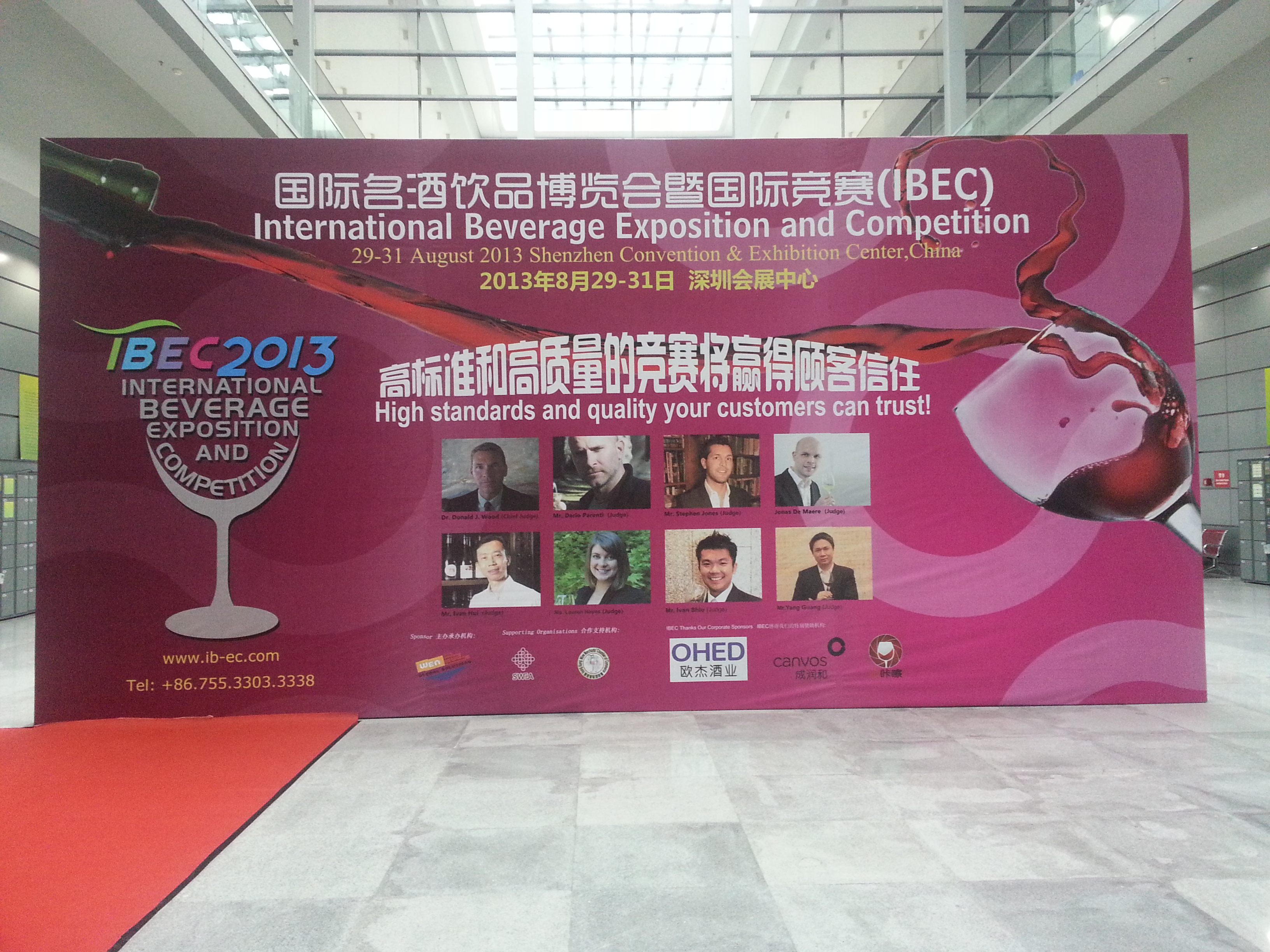 IBEC國際名酒飲品競賽和博覽會將同時進行。展會邀請100多名國際飲品專家、侍酒師作為評判。比賽專案包括有: 葡萄酒、烈酒、啤酒、雞尾酒、餐後甜酒、香檳、咖啡及名茶等等。